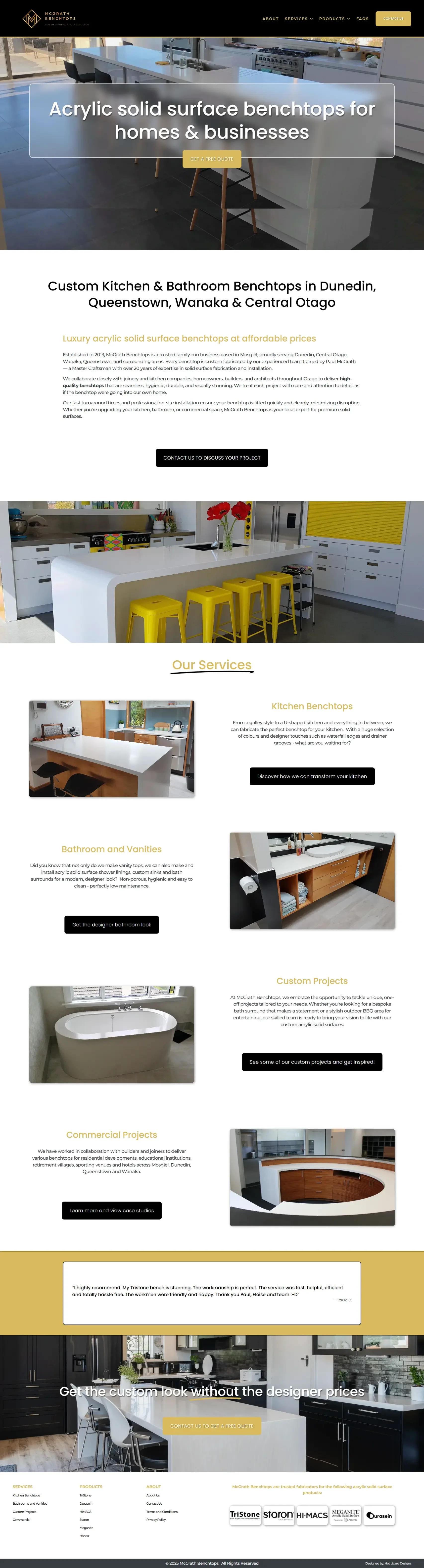 McGrath Benchtops, a New Zealand fabricator of premium acrylic benchtops, had outgrown their starter website.